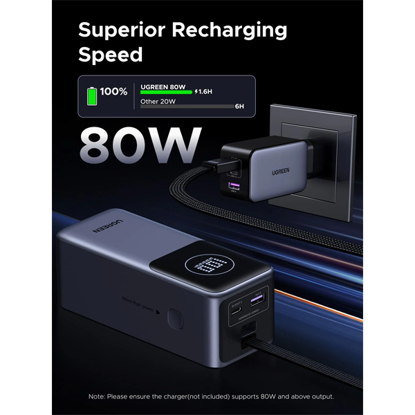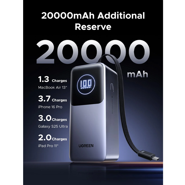 پاور بانک 3 پورت 130وات 20000mAh یوگرین مدل PB723 کد 55365B با کابل متصل USB-Cمدل: 55365B