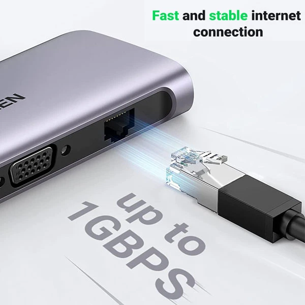 پورت Gigabit Ethernet هاب USB-C یوگرین مدل CM179، اتصال پایدار و پرسرعتی به شبکه را برای شما فراهم میکند.