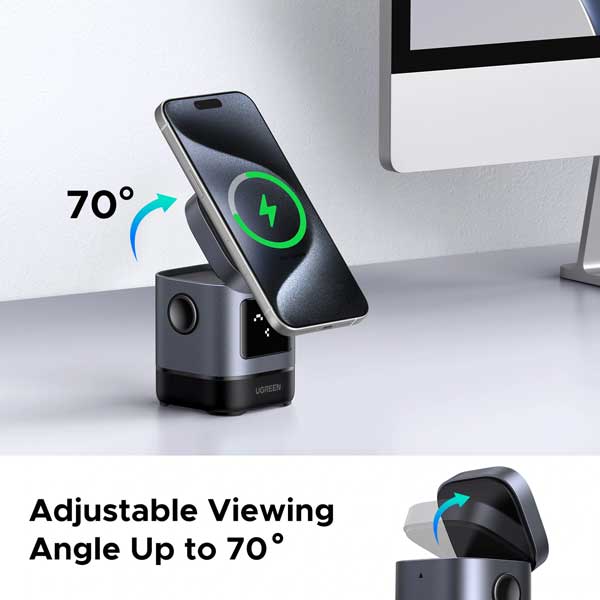 شارژر بی سیم آدمکی 2 در 1 مغناطیسی 15 وات QI2 یک پورت یوگرین مدل W709 کد 45775مدل: 45775