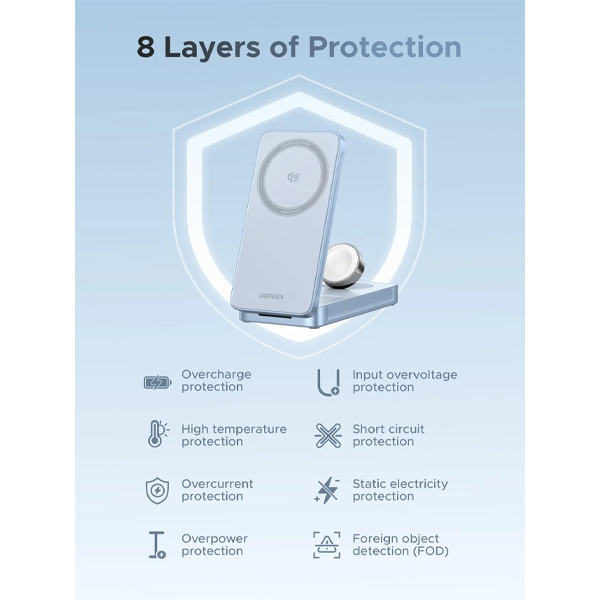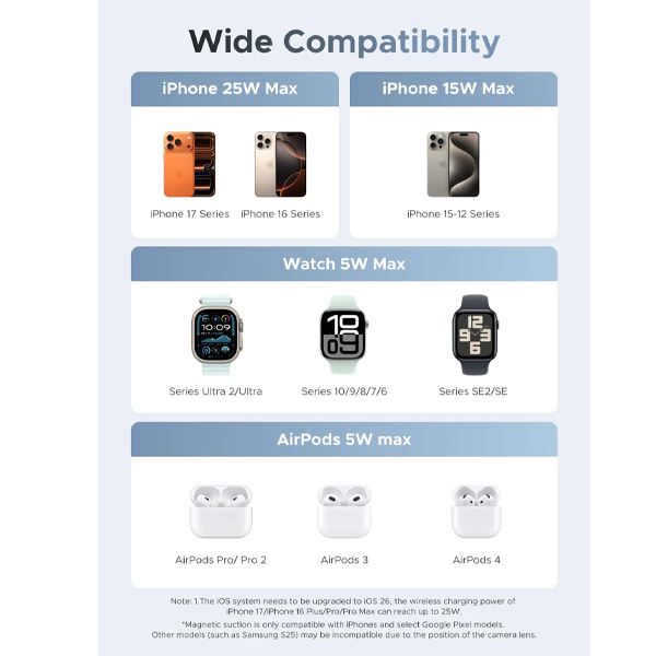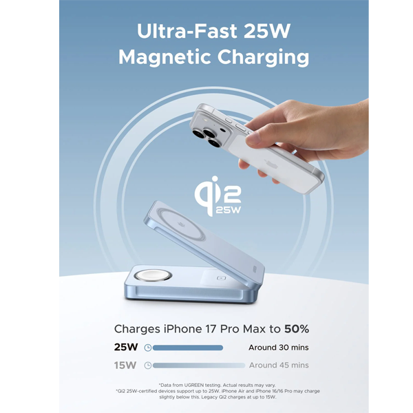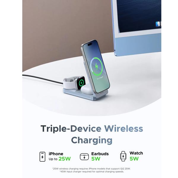 شارژر بی سیم 25 وات سه کاره آیفون، اپل واچ و ایرپاد MagFlow یوگرین با استاندارد Qi2 مدل 55965مدل: 55965