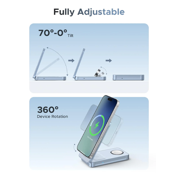 | سایر مشخصات | پشتیبانی از شارژ بی سیم Qi, پشتیبانی از شارژ بیسیم سریع تا ۲۵ وات, تکنولوژی GaN, حفاظت چندگانه, سازگار با Magsafe, قابلیت تنظیم زاویه شارژر مغناطیسی, مطابق با استاندارد MFi |