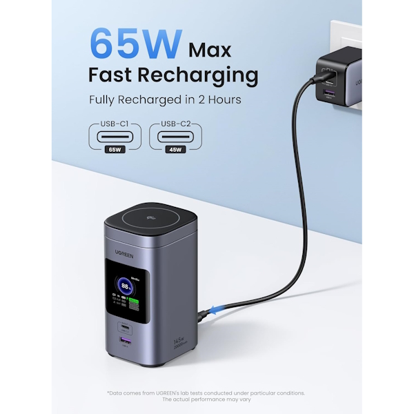 پاور بانک بی سیم و سیمی 3 پورت 145 وات Nexode 20000mAh یوگرین مدل 35527 همراه با کابل USB-Cمدل: 35527