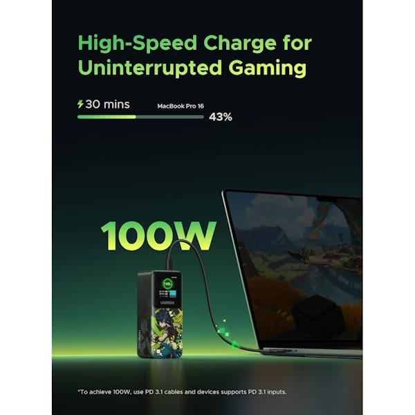 پاور بانک 3 پورت 130 وات Nexode 20000mAh یوگرین مدل 35524GI همراه با کابل USB-Cمدل: 35524GI