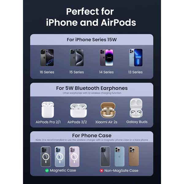اولین نفری باشید که نظر می دهید برای “شارژر 2 در 1 بی سیم 15 وات MagFlow Qi2 یوگرین مدل W706 کد 45023”