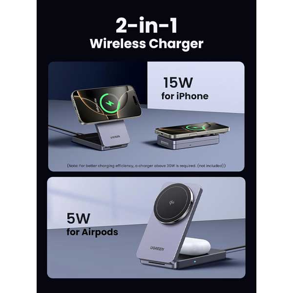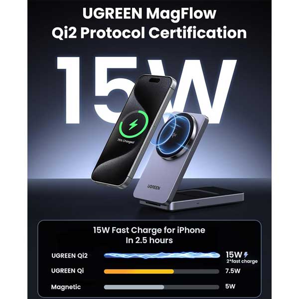 شارژر 2 در 1 بی سیم 15 وات MagFlow Qi2 یوگرین مدل W706 کد 45023مدل: 45023