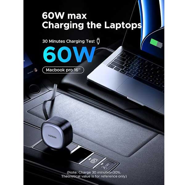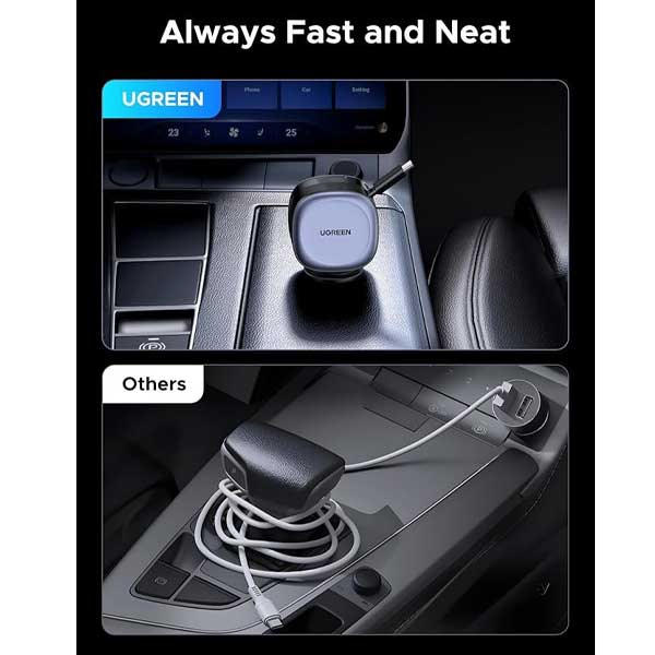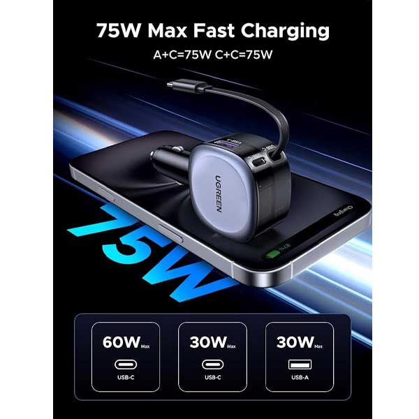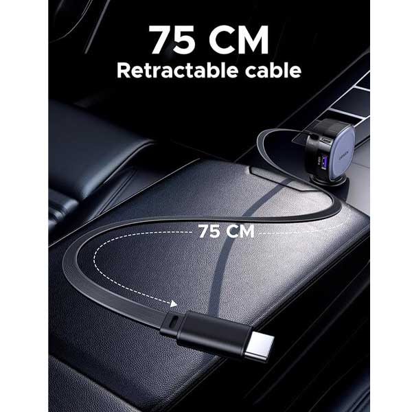 شارژر فندکی با کابل جمع شونده(retractable) 75وات یوگرین با دو پورت USB-C و USB-A مدل EC601 کد 55653مدل: 55653